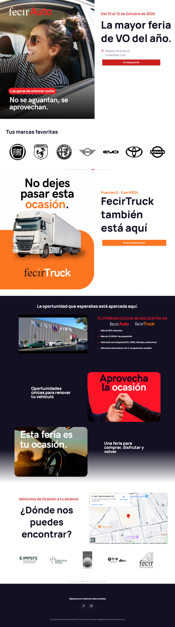 Creamos y desarrollamos la web oficial del evento, optimizada para SEO local (Ciudad Real, Castilla-La Mancha, vehículos de ocasión).