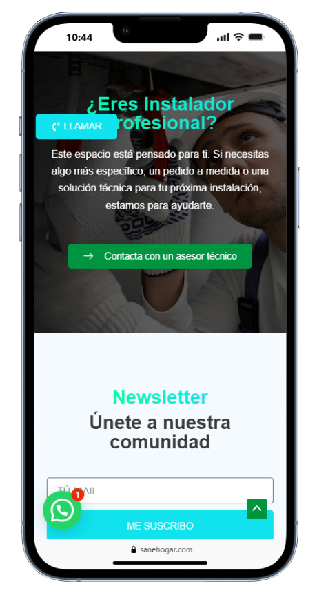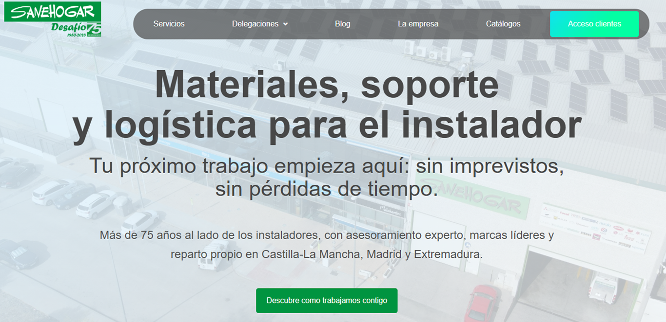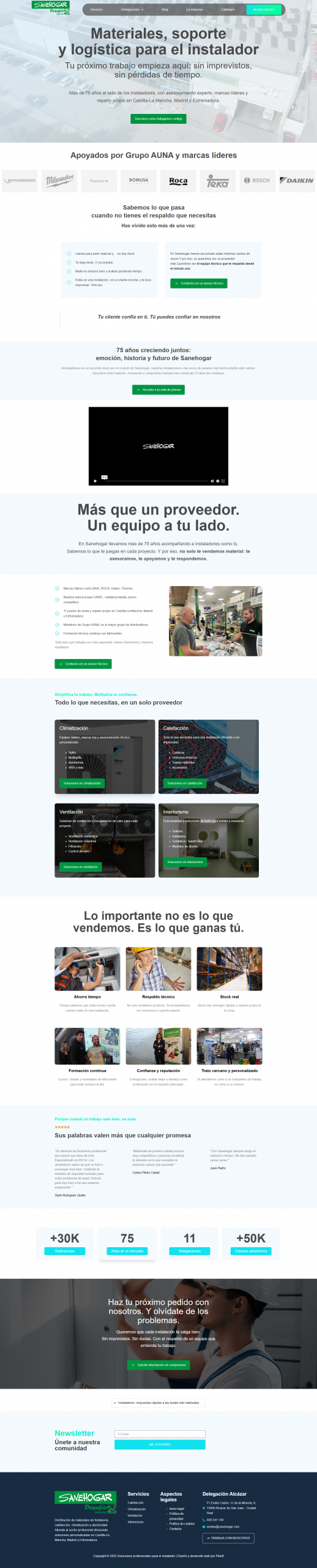 Presentamos una web completa pensada para el instalador: un home amplio que concentra nuestra propuesta de valor y acceso directo a 6 secciones clave