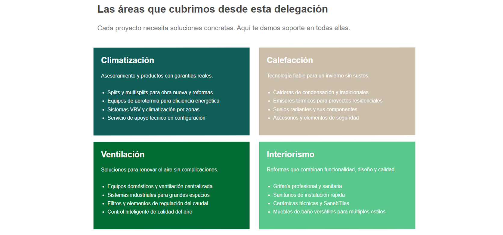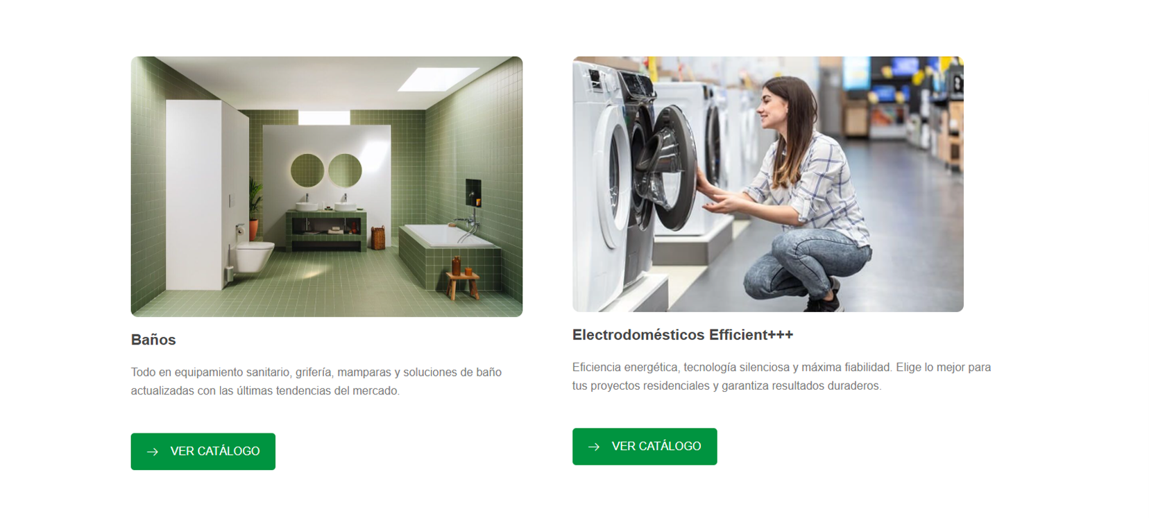 además de newsletter para recibir ofertas y novedades. El diseño ha sido optimizado en responsive (enfoque mobile-first, imágenes adaptativas, formularios accesibles y tiempos de carga reducidos) para que la experiencia sea impecable en móvil, tablet y escritorio. Integramos analítica avanzada (GA4) con eventos clave como clics en CTAs, descargas de catálogos, altas de newsletter, búsquedas, solicitudes de contacto y accesos al área de clientes, junto a paneles por delegación y embudos de conversión para medir, aprender y mejorar continuamente.