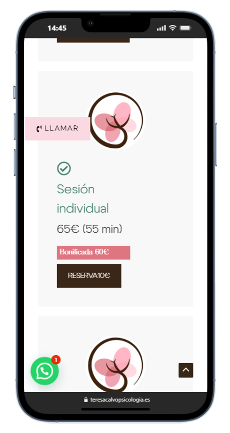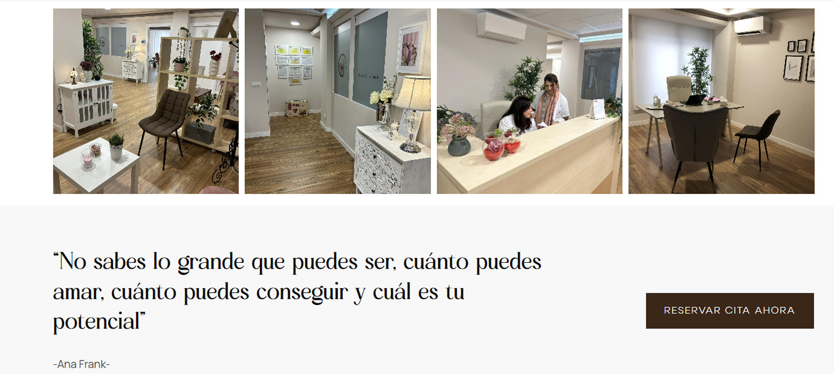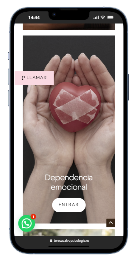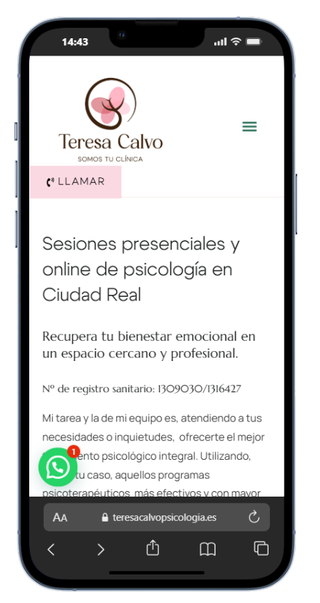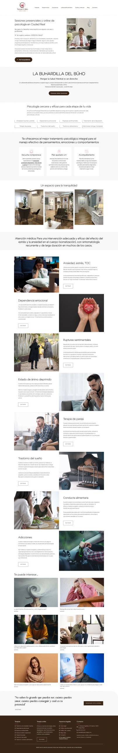 Construimos la presencia digital de Teresa Calvo como una web completa, cálida y ordenada, que acompaña al paciente desde el primer clic. La home presenta la clínica y a la psicóloga con un tono humano, fotografías reales del espacio y un recorrido claro por las principales áreas de intervención: ansiedad, rupturas sentimentales, dependencia emocional, estado de ánimo deprimido, terapia de pareja, trastornos del sueño, conducta alimentaria o adicciones.